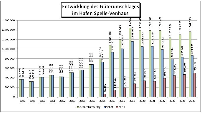 Der Standort Spelle-Venhaus bietet optimale Umschlagmöglichkeiten für die verschiedensten Güter. Egal, ob Massen-, Stück- oder Schwergut verladen werden muss, der Hafen Spelle-Venhaus verfügt über die entsprechende Supra- und Infrastruktur. Dank Flüssiggüterumschlagsanlagen lassen sich überdies Mineralöle problemlos umschlagen.